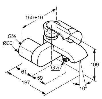 Размеры: высота - 109 мм, выступ от места монтажа - 187 мм;