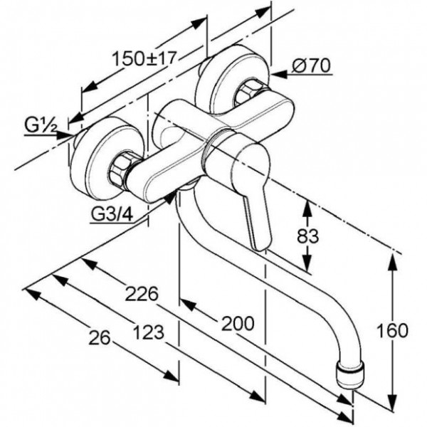 Размеры: высота - 195 мм, выступ от места монтажа - 226 мм;