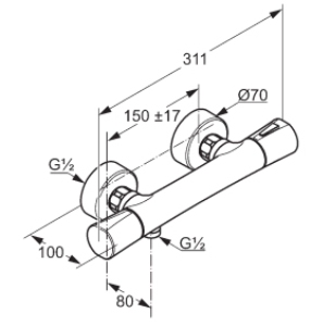 Комплектация: термостатический смеситель, эксцентрики, отражатели;