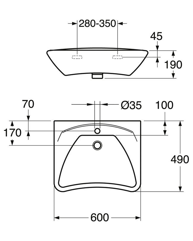 Размеры (мм): длина - 600, ширина - 490, высота - 190;
