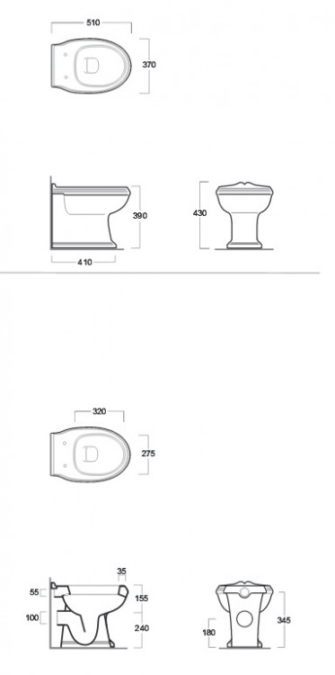 Напольный приставной унитаз в стиле ретро SIMAS (Италия) из коллекции ARCADE с выпуском Vario (т.е. вплотную к стене).