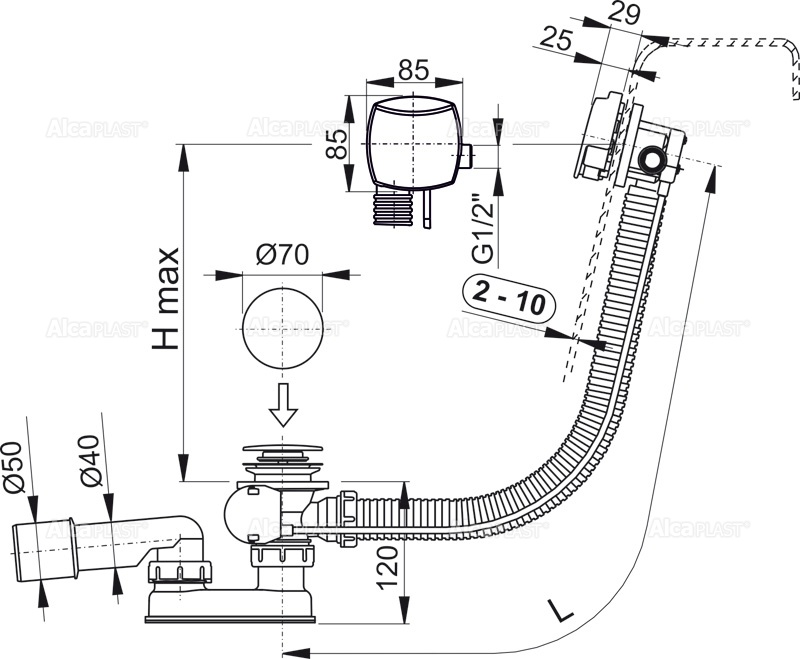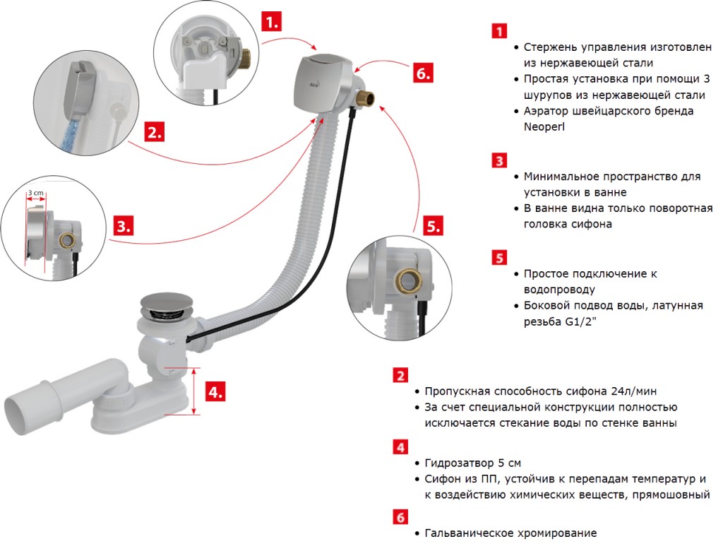 Слив-перелив с функцией набора воды в ванну ALCAPLAST (Чехия);