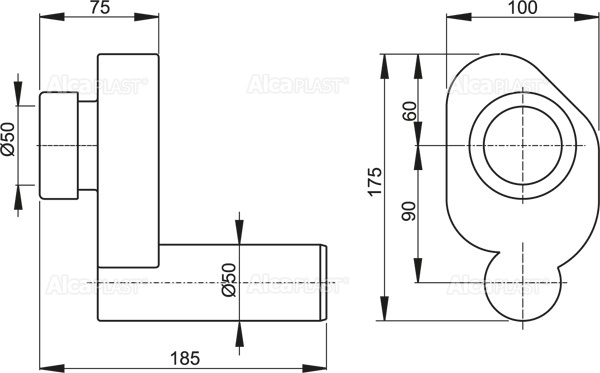 Сифон с уплотнением для уринала (писсуара) ALCAPLAST (Чехия);