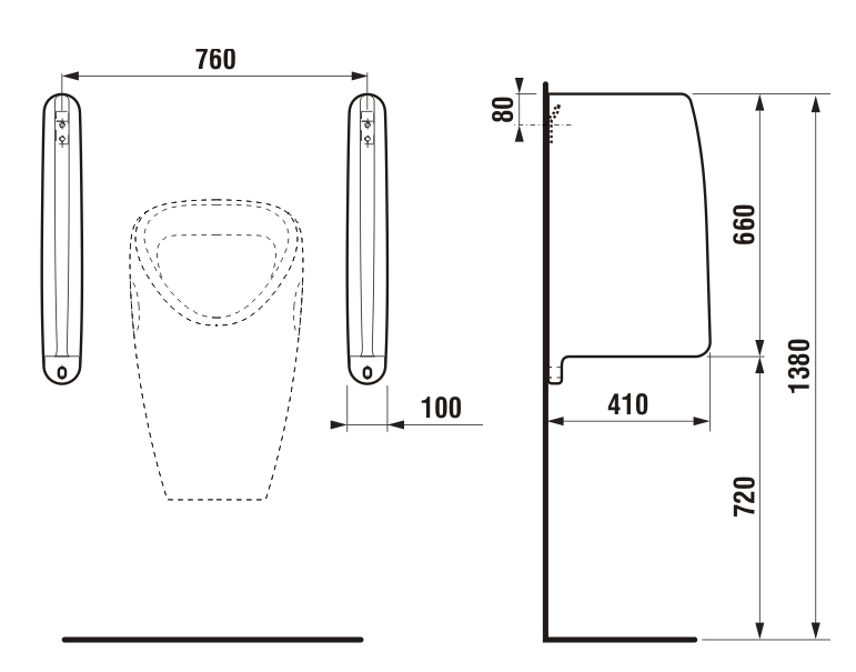 Размеры, (мм): длина - 410, ширина - 100, высота - 660;