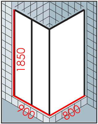 Размеры, (мм): ширина двери - 900, глубина (ширина боковой стенки) - 800, высота - 1850;