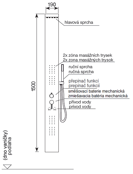 Гидромассажная душевая панель известного чешского производителя ROLTECHNIK со стандартным смесителем.