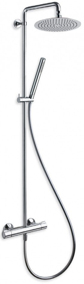 Комплектация: фиксированная неповоротная штанга, верхний тропический душ 250 мм, кронштейн верхнего душа с поворотным шарниром, термостатический смеситель для душа, 1-режимная душевая лейка-стик, регулируемый по высоте держатель душевой лейки, гибкий металлический усиленный шланг длиной 1500 мм, соединение шланга 1/2 дюйма;
