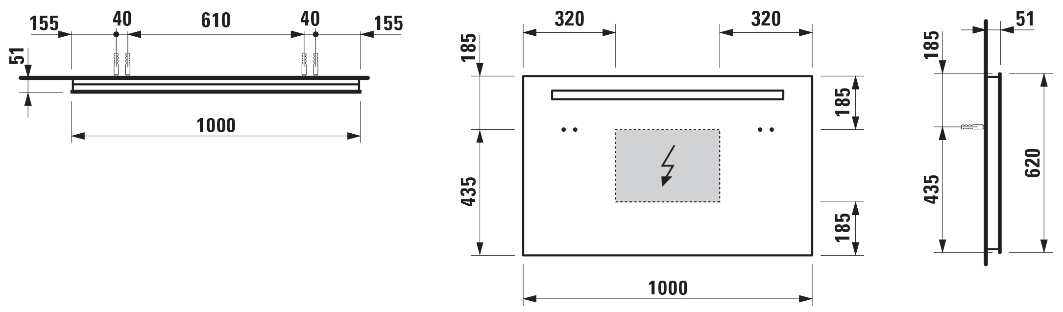 Размеры, (мм): длина - 1000, высота - 620, глубина - 51;