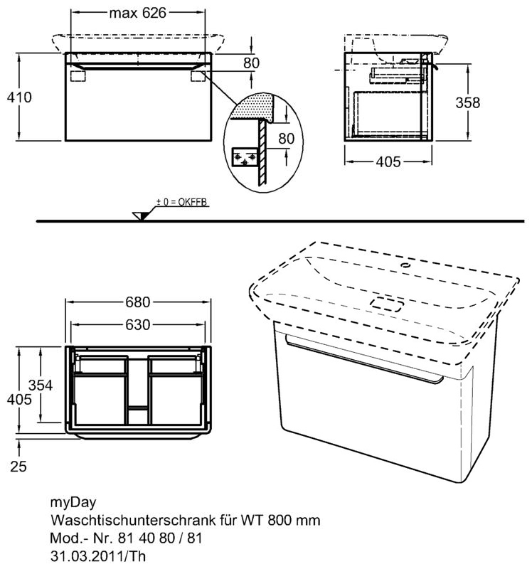 Размеры, (мм): тумба: ширина - 680, высота - 410, глубина - 405;