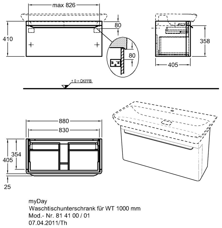 Размеры, (мм): тумба: ширина - 880, высота - 410, глубина - 405;