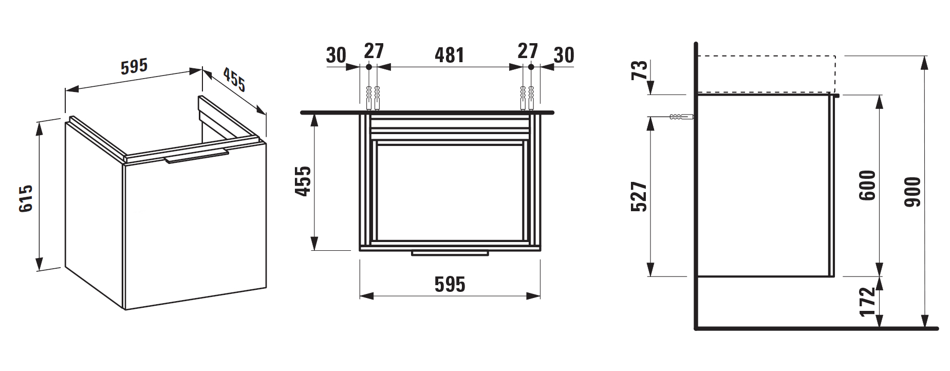 Размеры, (мм): длина - 595, ширина - 455, высота - 600;