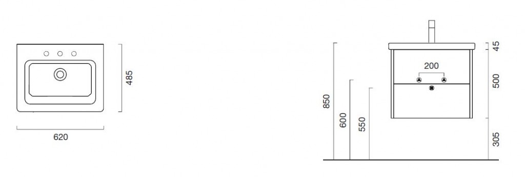 Размеры, (мм): тумба: ширина - 620, высота - 545, глубина - 485;