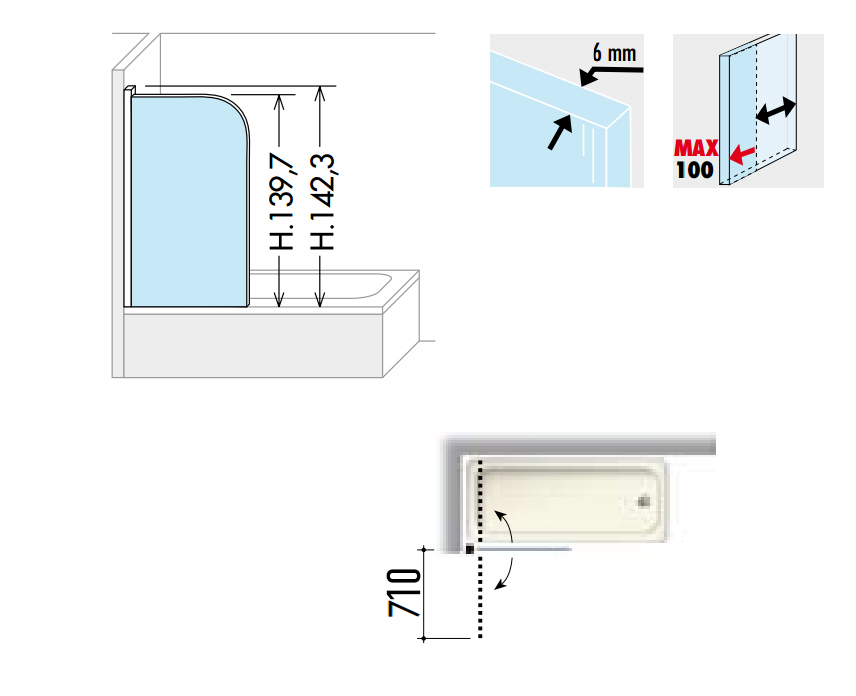 Поворотная шторка для ванны 2BOX DOCCE (Италия) из серии IBIS.