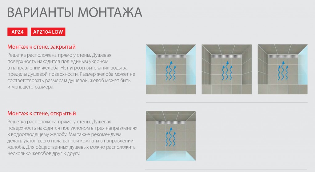 Душевой трап (лоток) ALCAPLAST (Чехия) для установки к стене.