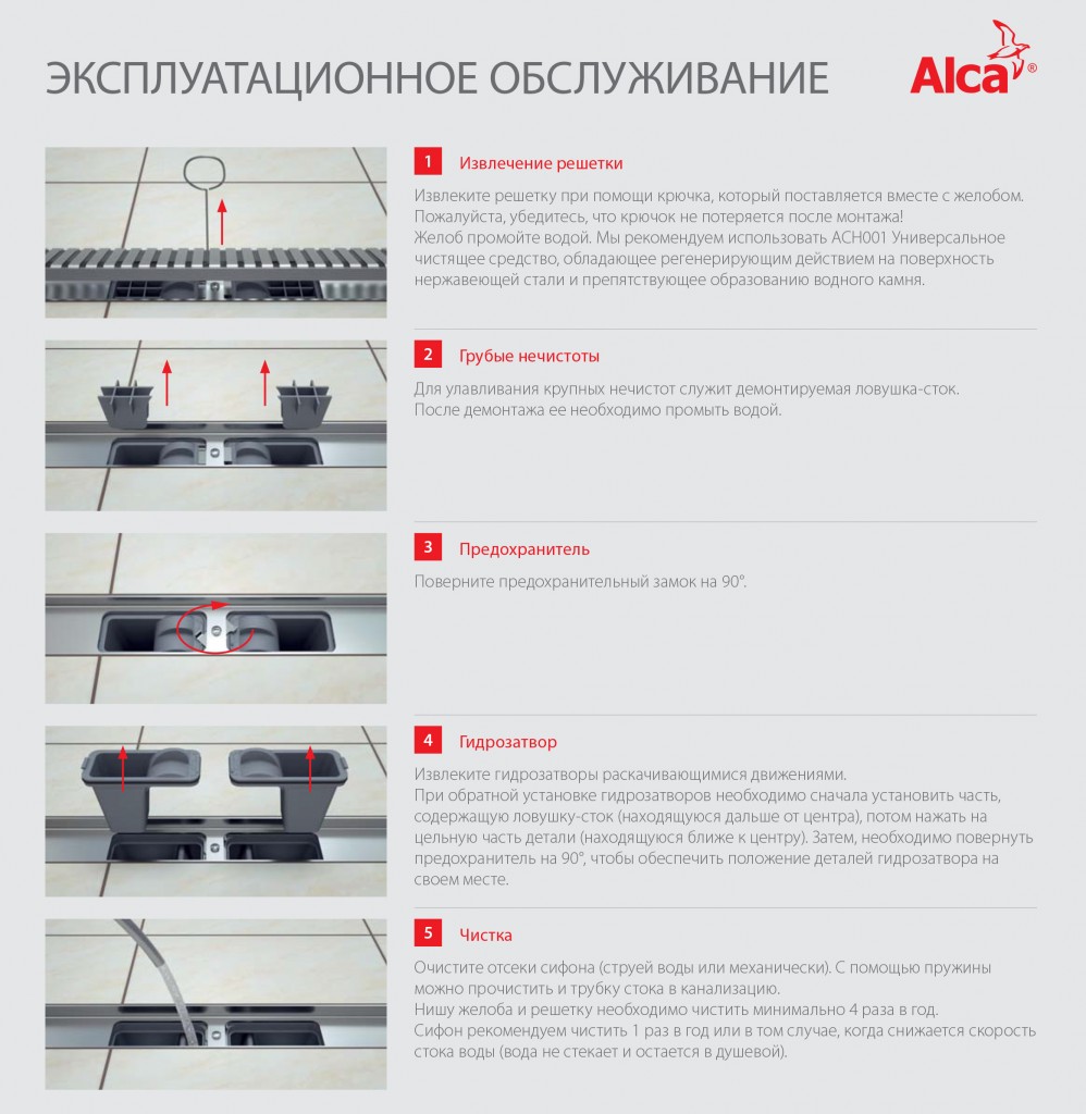 Душевой трап (лоток) ALCAPLAST (Чехия) для установки к стене.