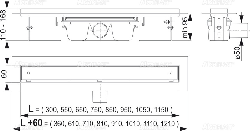 Душевой трап (лоток) ALCAPLAST (Чехия) под кладку плитки или водонепронецаемого дерева.