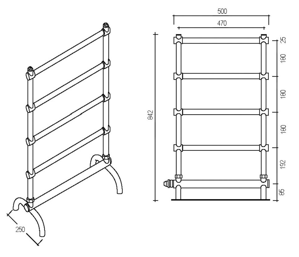 Габаритные размеры: ширина - 500 мм, высота - 842 мм;