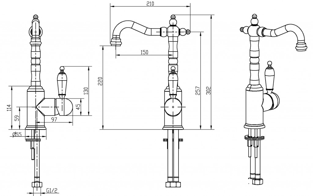 Комплектация: смеситель, комплект крепления, гибкая подводка;
