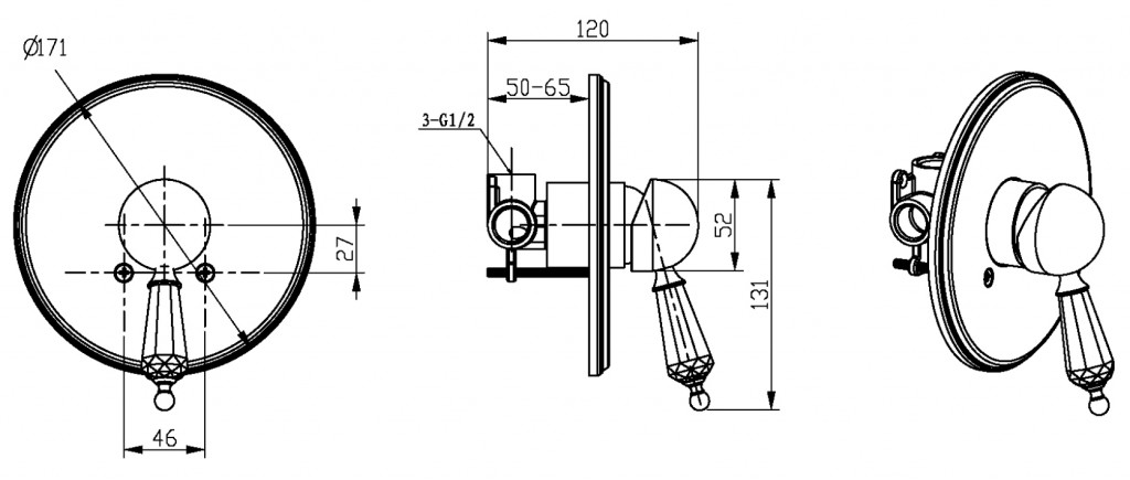 Комплектация: смеситель, комплект крепления, декоративная панель, ручка;