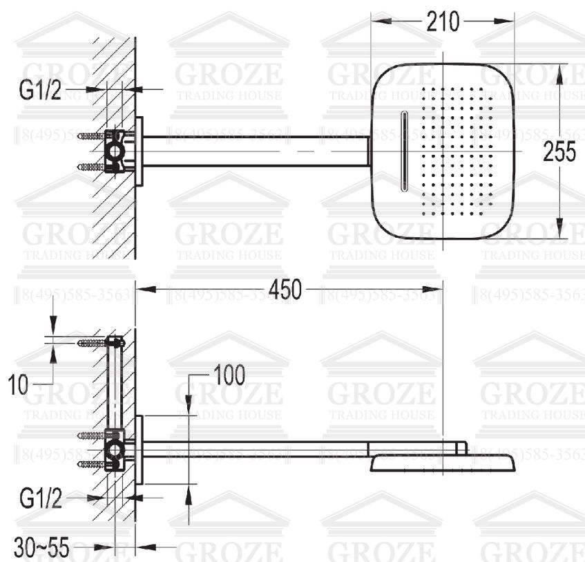 Комплектация: верхний тропический душ 255x210 мм с каскадным изливом;