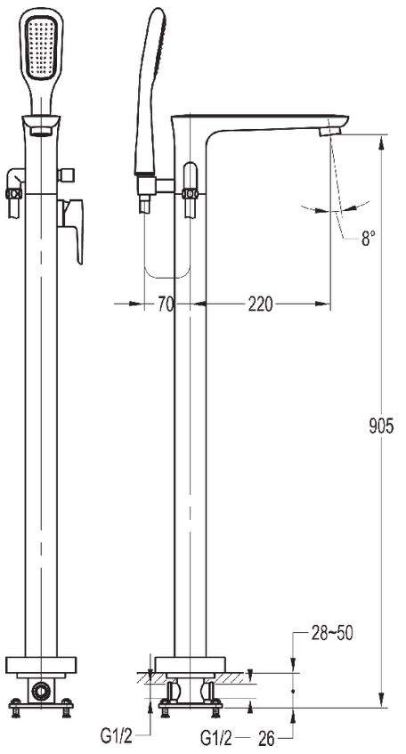 Напольный смеситель для ванны с ручным душем FLOVA (Великобритания) из коллекции URBAN.