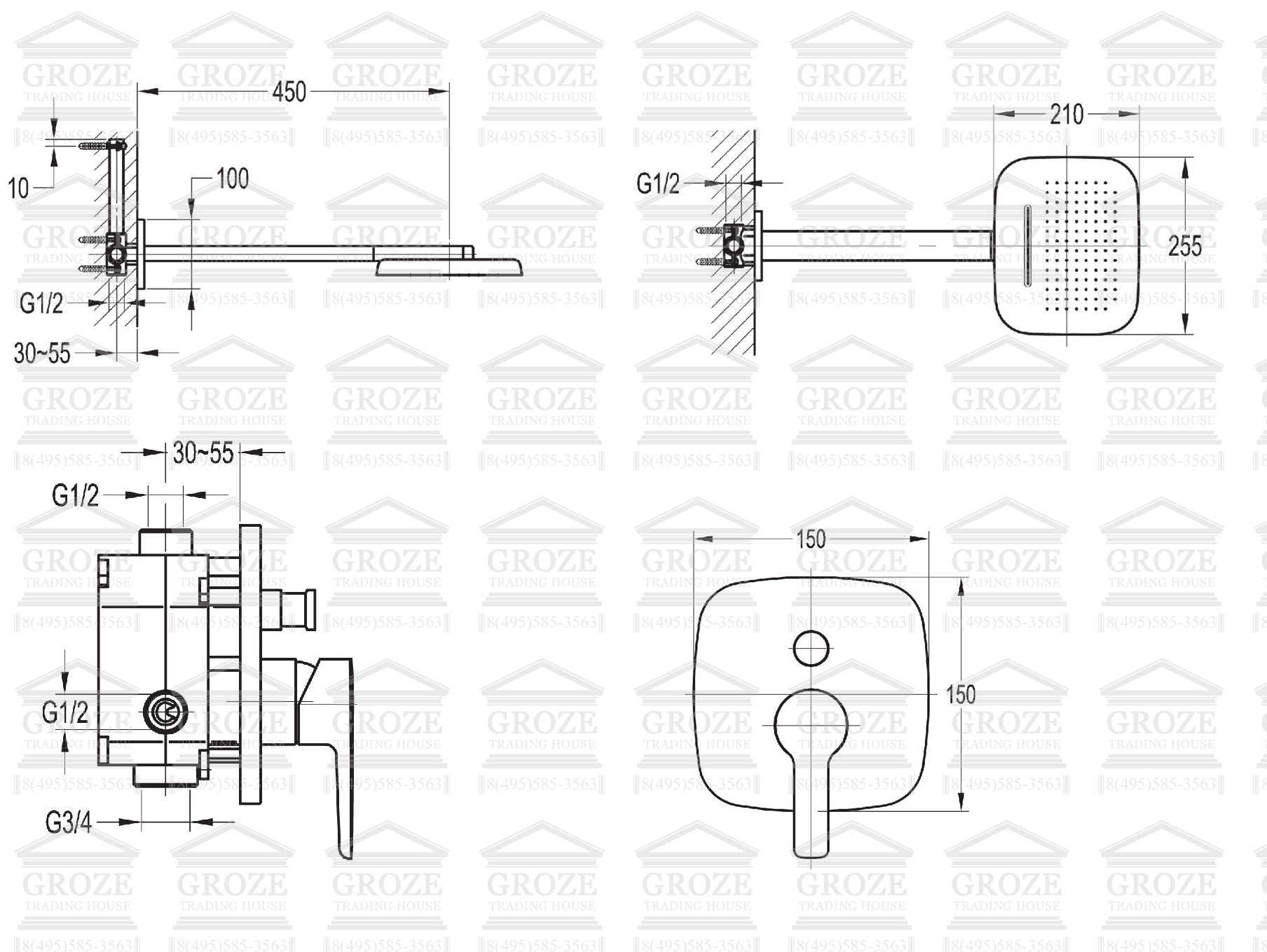 Комплектация: верхний тропический душ 255x210 мм с каскадным изливом, монокомандный смеситель для душа скрытого монтажа с дивертором, встраиваемый блок SMART BOX;