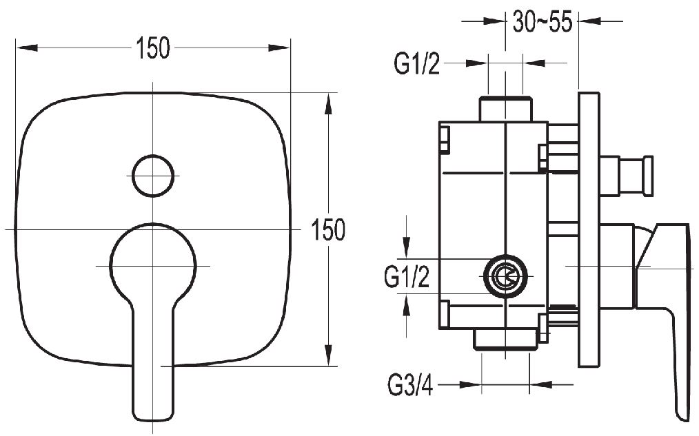 Смеситель для ванны и душа скрытого монтажа FLOVA (Великобритания) из коллекции URBAN.