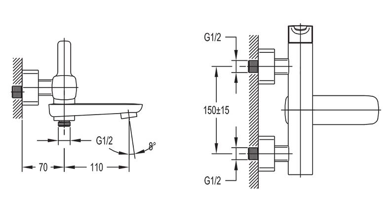 Комплектация: смеситель для ванны и душа с изливом на ванну, комплект крепления;