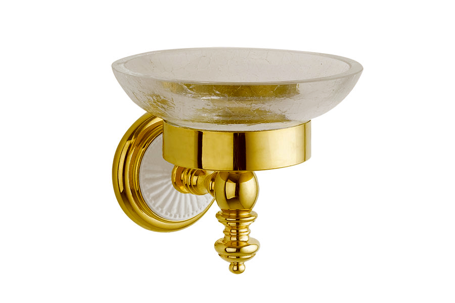 Цвет: держатель - золото с белой керамической вставкой, блюдце - кракелюрное стекло;
