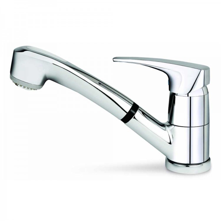 Комплектация: смеситель, металлический выдвижной 2-режимный душ, гибкая подводка;
