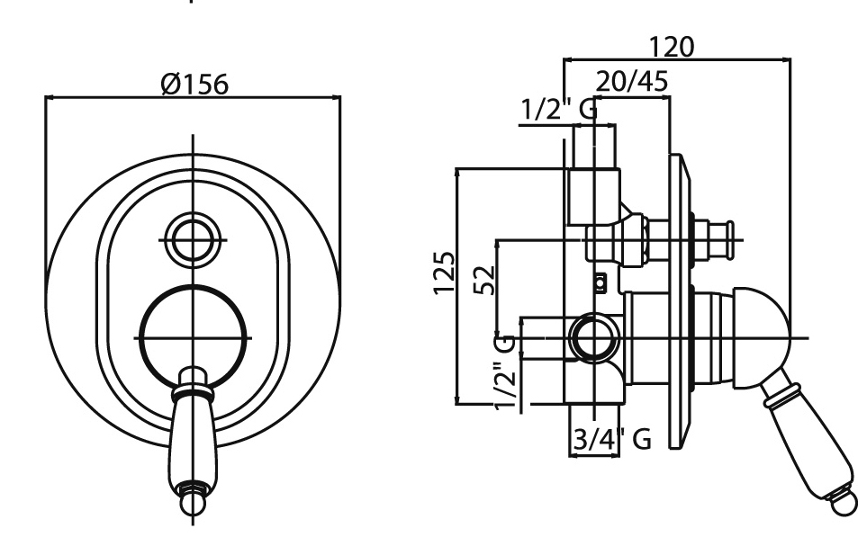 Смеситель скрытого монтажа для ванны и душа FIORE (Италия) из коллекции IMPERIAL.