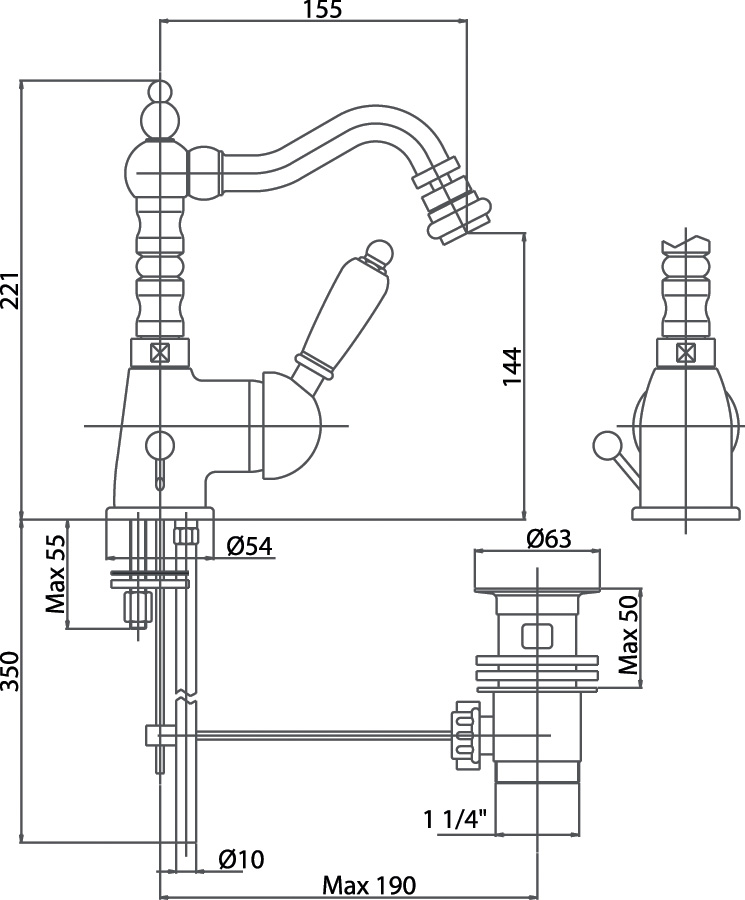 Комплектация: смеситель, гибкая подводка, донный клапан;