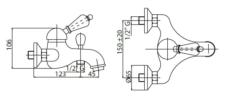 Смеситель для ванны и душа FIORE (Италия) из коллекции IMPERIAL SKY.