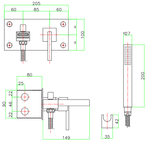 Размеры, (мм): ширина - 205, высота - 100, глубина - 149;