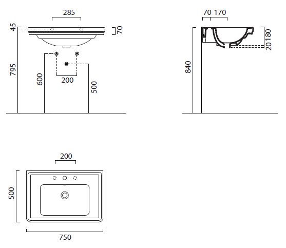 Размеры, (мм): длина - 750, ширина - 500, высота - 200;