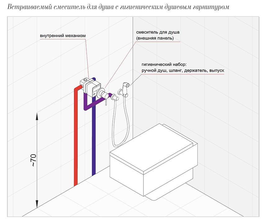 Комплектация: лейка гигиенического душа, металлический шланг, держатель душевой лейки, набор для настенного крепления;