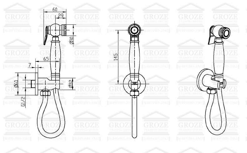 Комплектация: лейка гигиенического душа, металлический шланг, держатель душевой лейки, набор для настенного крепления;