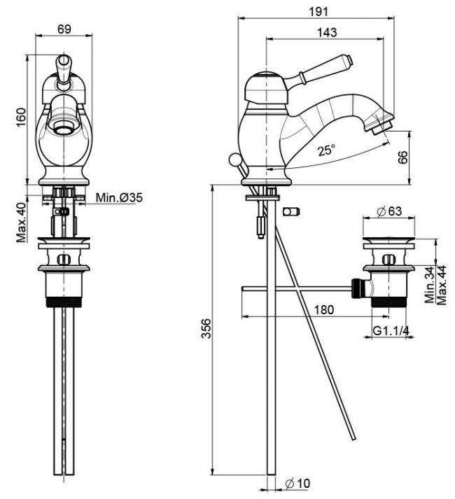 Комплектация: смеситель, жёсткая подводка, донный клапан;