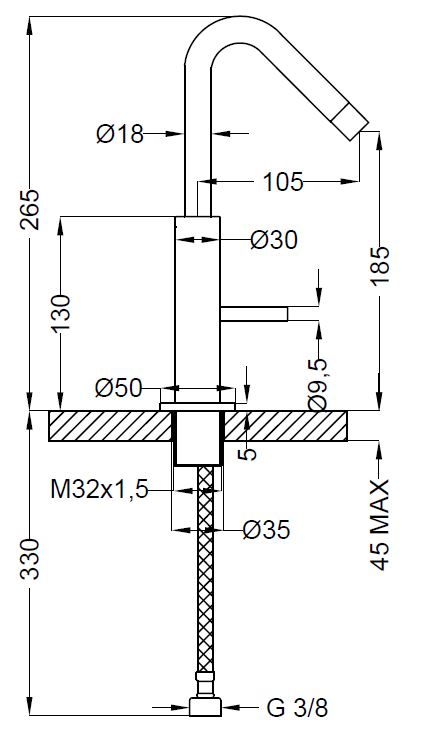 Комплектация: смеситель, гибкая подводка, донный клапан;