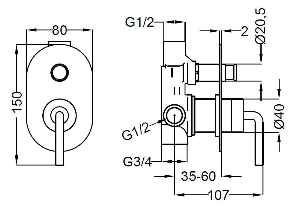Настенный смеситель для ванны и душа скрытого монтажа Cristina (Италия) из коллекции Lillo;